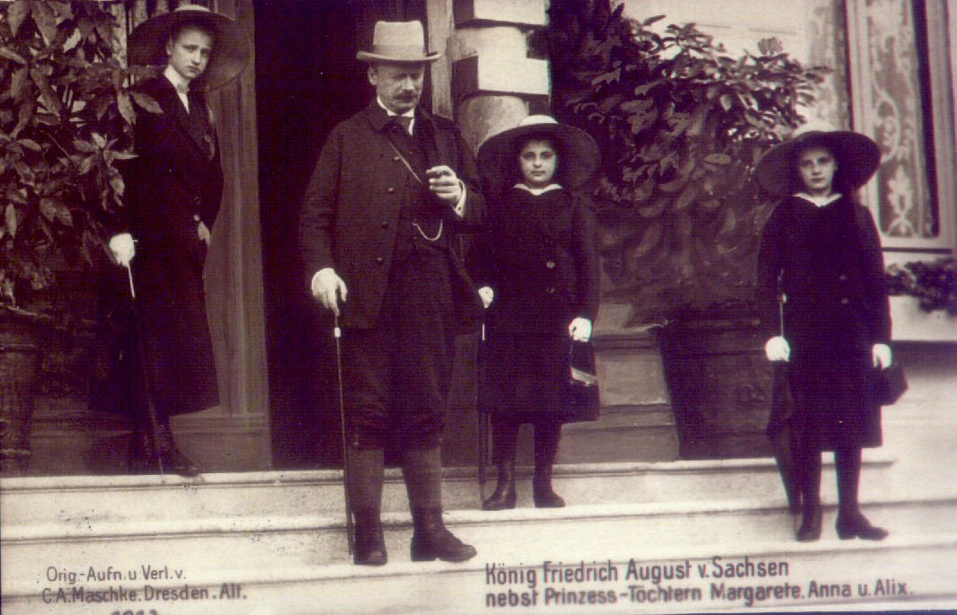 Friedrich August III. König von Sachsen, geb. Dresden, 25. Mai 1865, gest. Sibyllenort/Schlesien, 18. Febr. 1932, König von 1904-1918, verm. mit Luise Erzherzogin von Österreich, Prinzessin von Toscana, gesch. 11. Febr. 1903.
